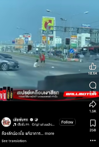Nonetheless, people could not cross the junction as the traffic was heavy. Kornpon believed the delay created frustration and led to the woman’s emotional reaction seen in the video. He said the man spent around three minutes calming her before the situation improved. After that, the couple pushed their motorcycle away from the intersection and slowly walked home together.
