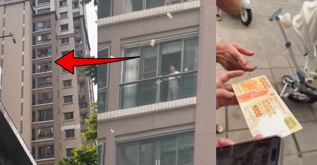 Reports suggest the total amount could have reached around HK$2 million (approximately SGD 340,000). As the money fell from above, people nearby rushed to collect the notes from the ground. Some residents confirmed that the money was real.
