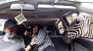 An unexpected viral moment was captured in the form of a family safari trip in Indonesia when a zebra appeared in a car.