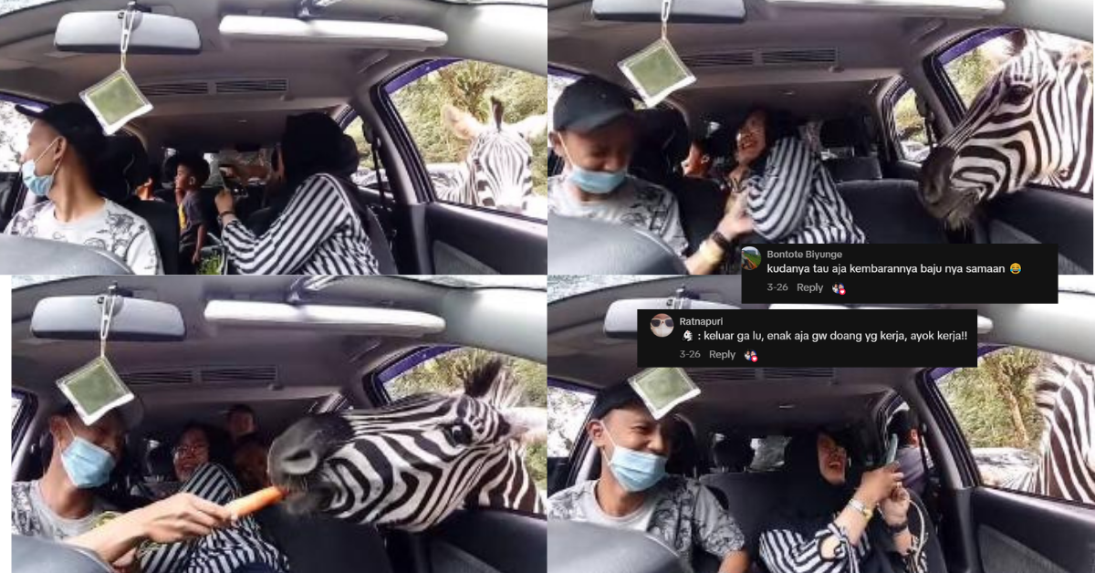 An unexpected viral moment was captured in the form of a family safari trip in Indonesia when a zebra appeared in a car.